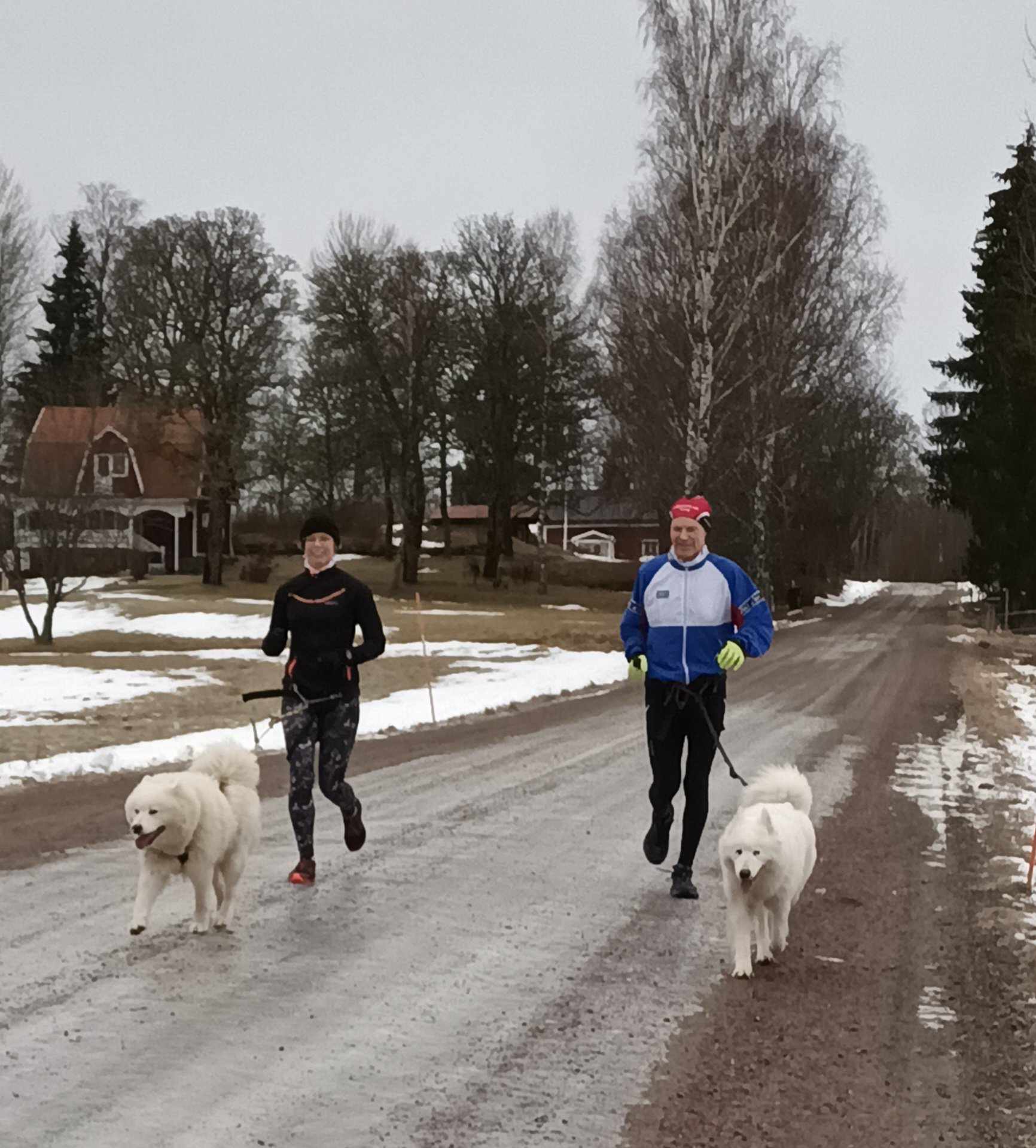Idag har Håkan och grannen Monika sprungit 16.5km med Freya och Honya. Jag och gannen Ingrid gick 5km med Titan.